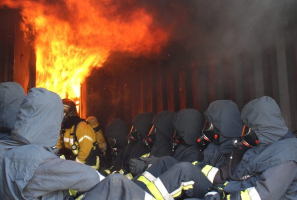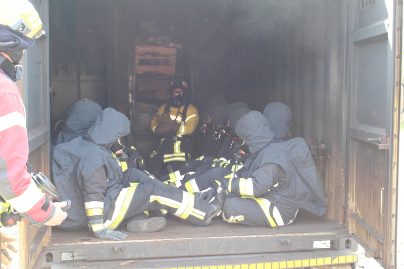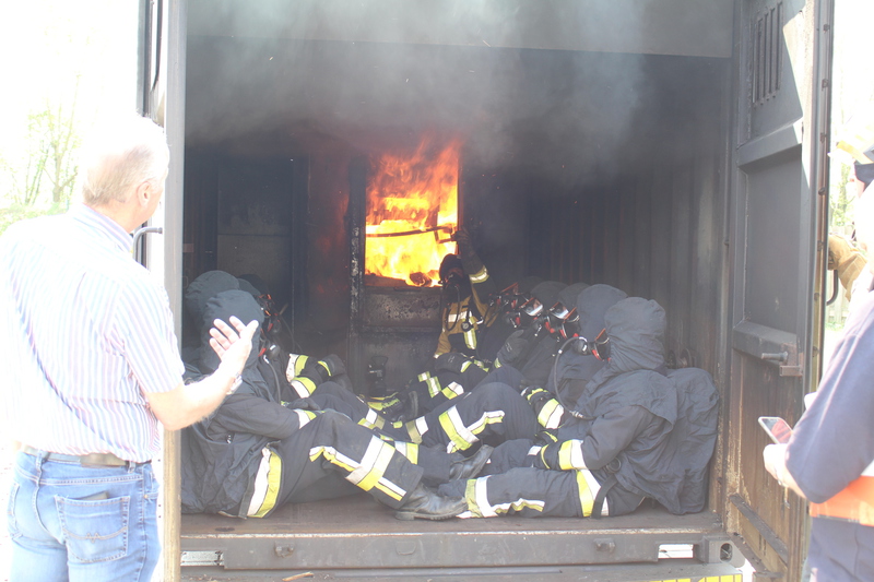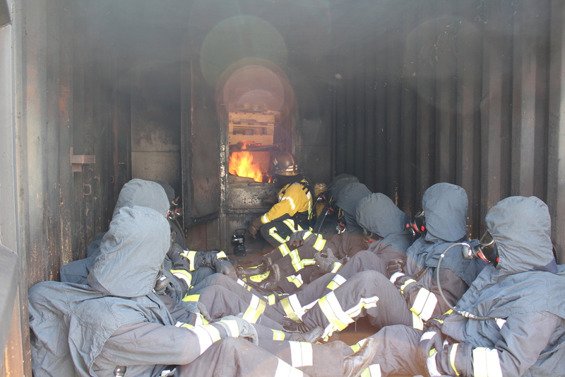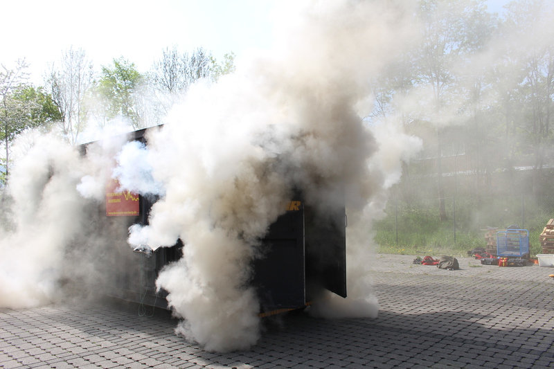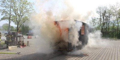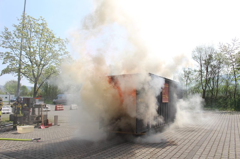 Dort wurden den Teilnehmern dargestellt, wie sich ein Zimmerbrand verhält mit Temperaturen und Rauchgasdurchzündung.