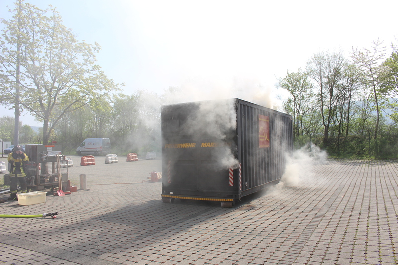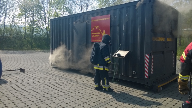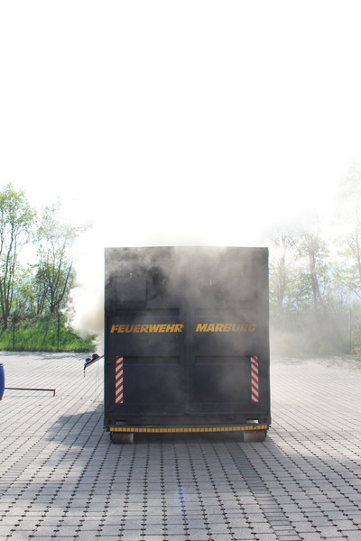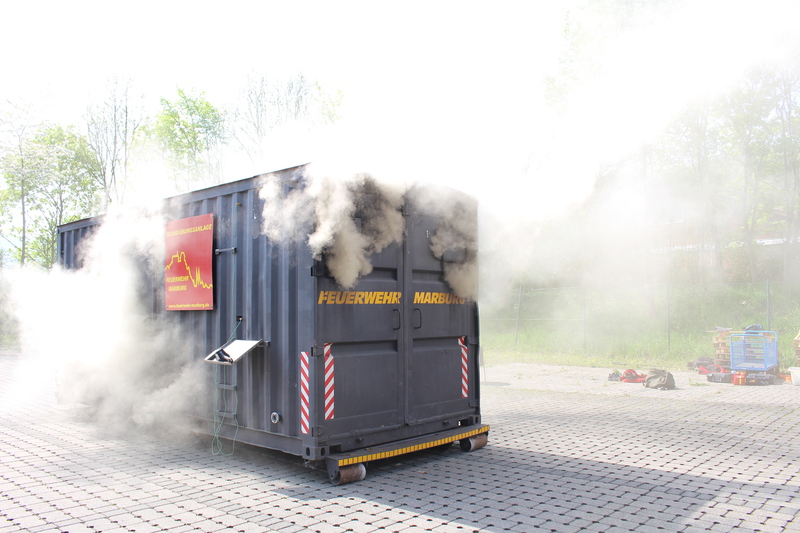 Deswegen kriechen Feuerwehrleute auch in ein brennendes Gebäude. Der Marburger Brandcontainer habe gegenüber vielen anderen einen weiteren Vorteil, ergänzt er: Indem er ausschließlich durch ein echtes Feuer aufgeheizt wird, sei das Einsatzszenario realistischer als zum Beispiel bei einem gasbetriebenen Modell. „Zum einen ist die Temperatur bei unserer Variante größer. Und zum anderen kann man ein Gasfeuer natürlich nicht löschen. Das geht da nur über Sensoren, wenn man eine bestimmte Menge Wasser draufgibt“, erläutert Felgenhauer.
