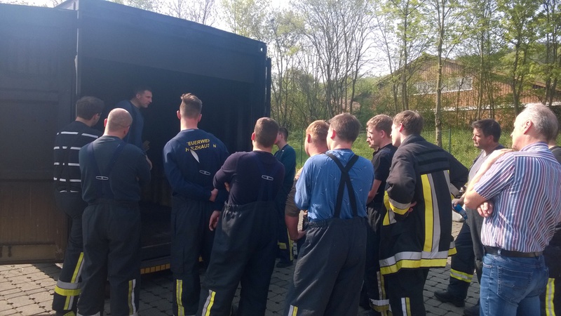 Am Samstagmorgen wurde mit Hohlstrahlrohrtraining und Türöffnung begonnen, ehe es ab dem späten Vormittag zum Highlight mit dem Brandübungscontainer kam.