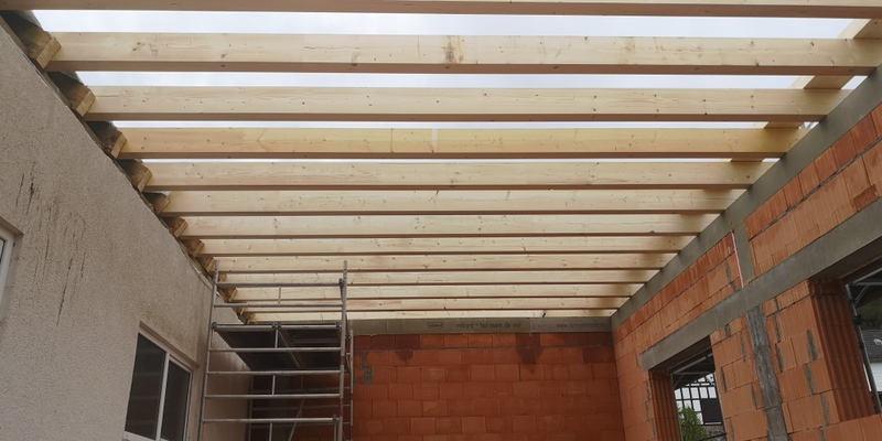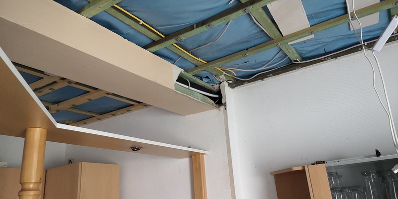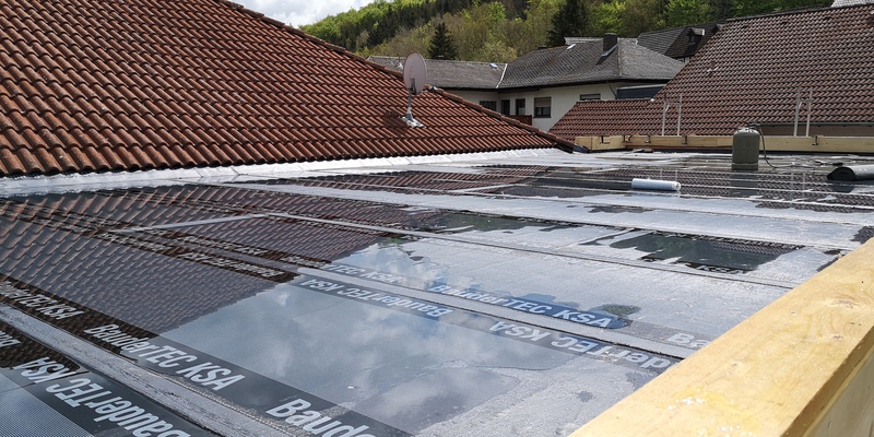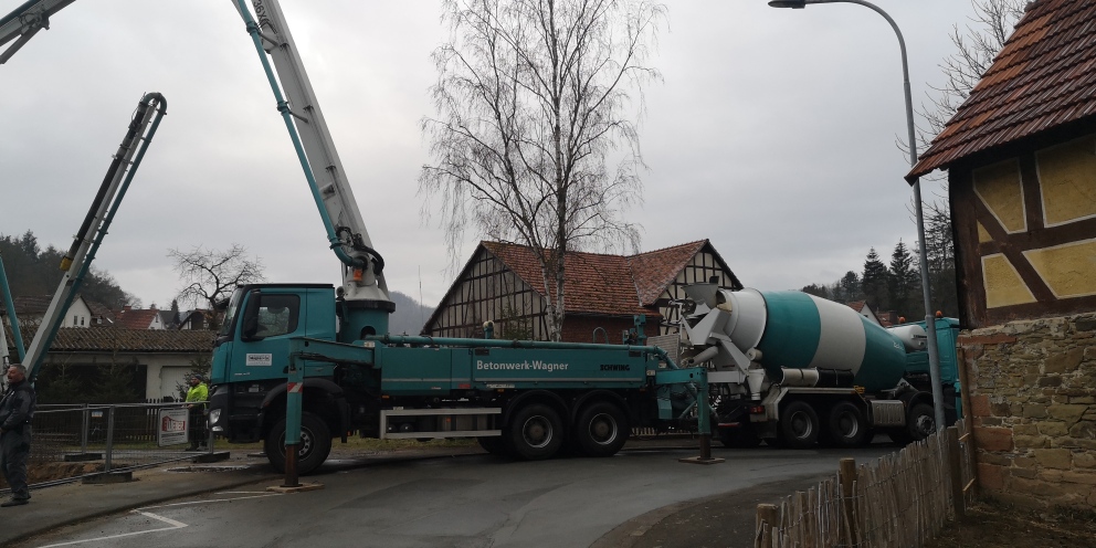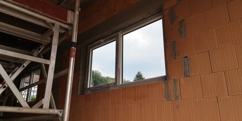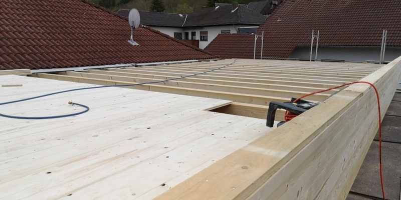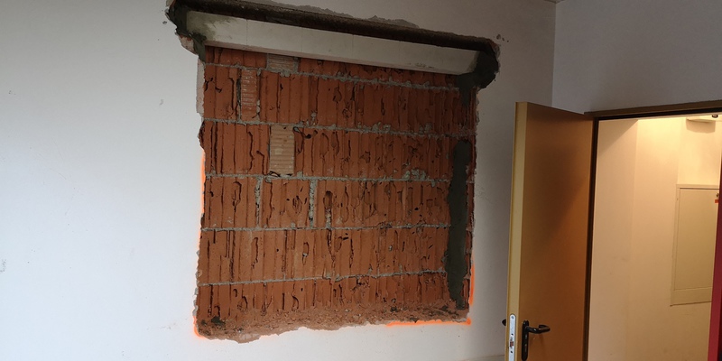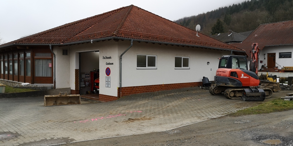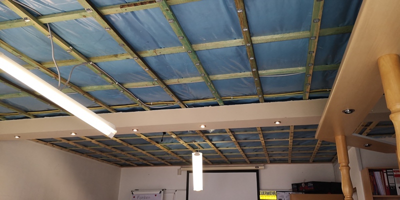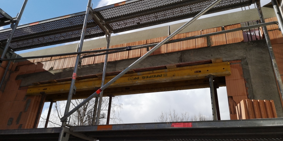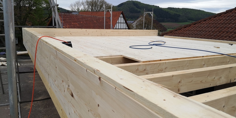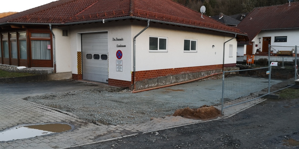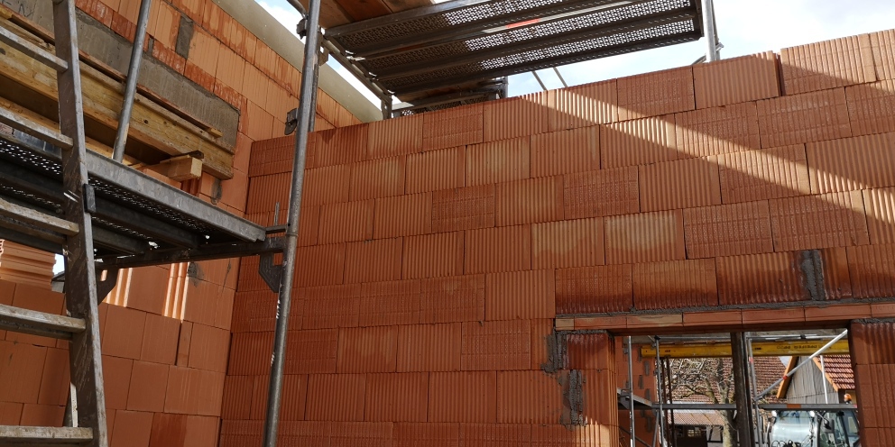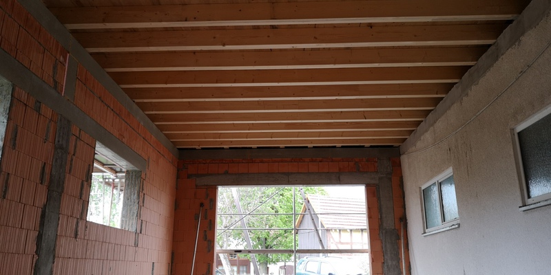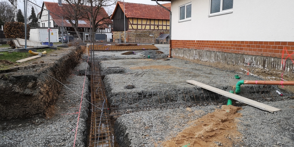 In der KW 14 und 15 bremste das Wetter die Baumaßnahme ein wenig ein. Trotz allem wurde einiges erledigt. So wurde der Ringanker beim Rohbau gegossen, im alt Bestand (Schulungsraum, Sanitären Anlagen, Umkleide Damen und Flur) wurden die Holzdecken entfernt. Die Deckenverkleidungen mussten auf Grund des Umfangreichen Brandschutzkonzeptes entfernt werden und werden durch brandhemmende Deckenverkleidungen später ersetzt. In der KW 16 und 17 wurden die weiteren Maßnahmen wieder durch das Wetter eingebremst. In der KW 18 wurde der Rohbau und der Dachanschluss vom Bestand für die Zimmerarbeiten vorbereitet. Die Zimmerleute werden ab der KW 19 die Dachkonstruktion aufschlagen und im Anschluss wird der Dachdecker das Dach eindecken.