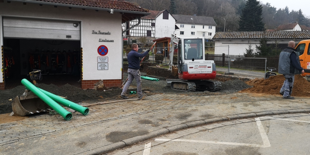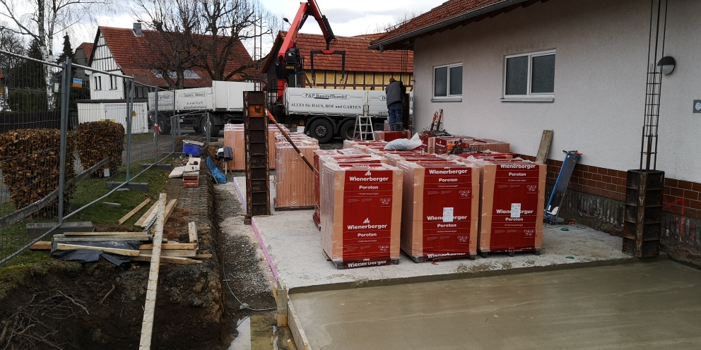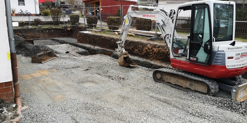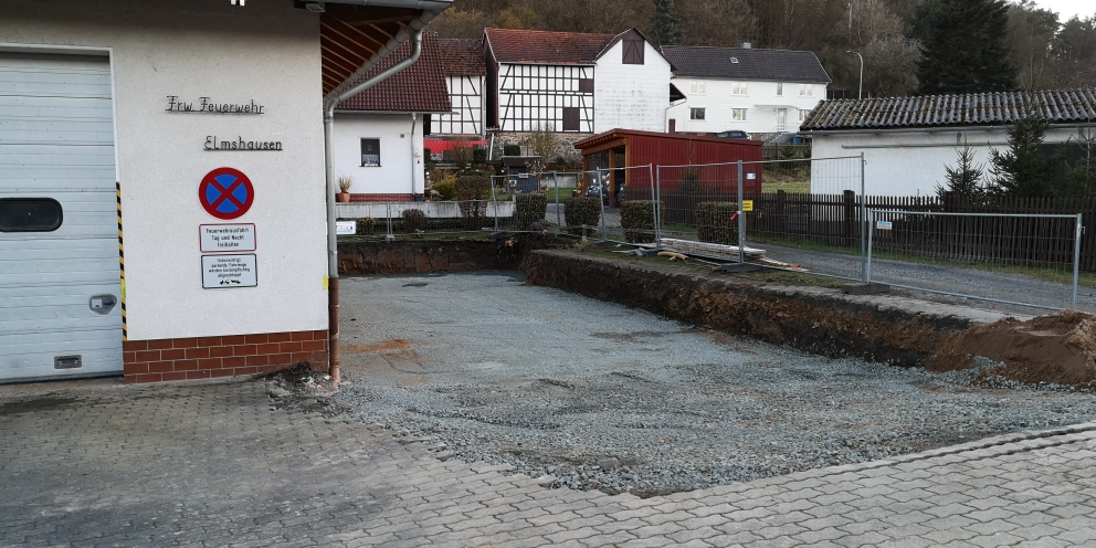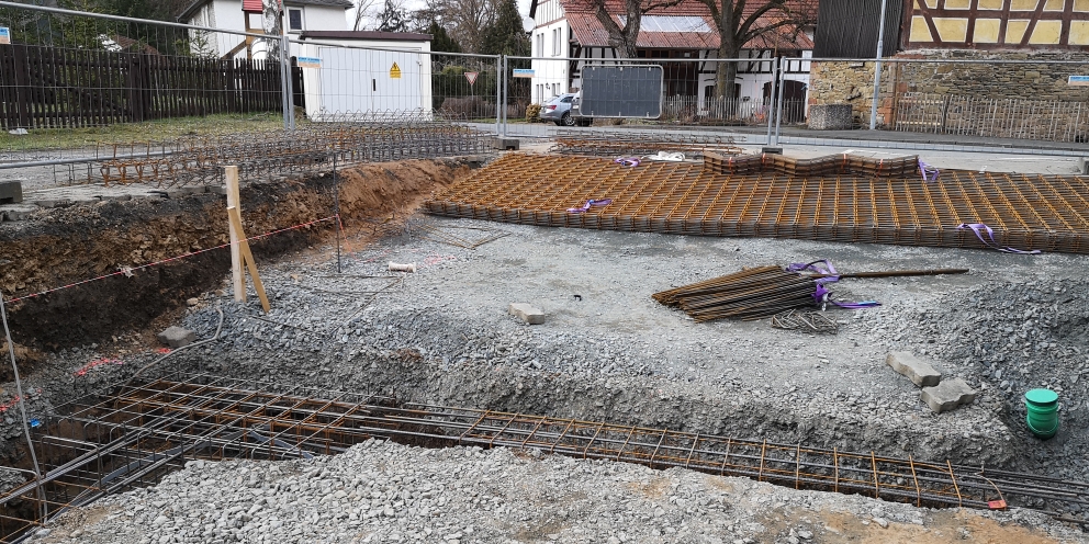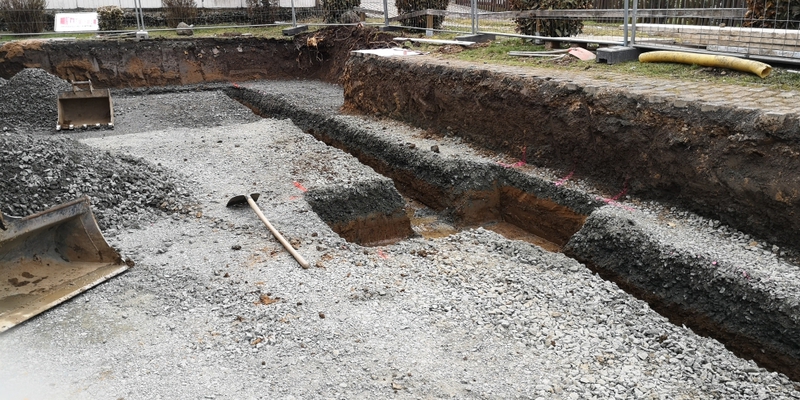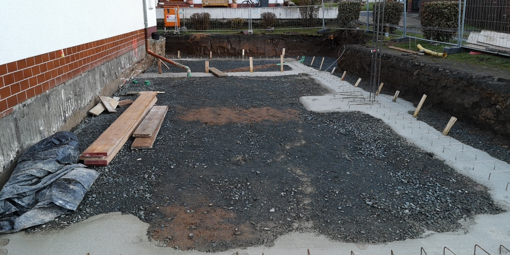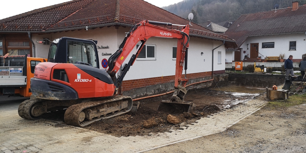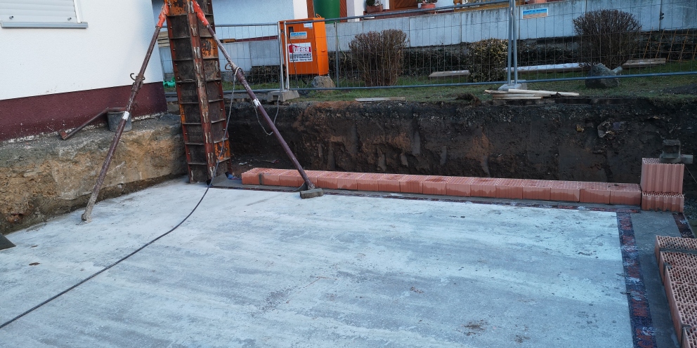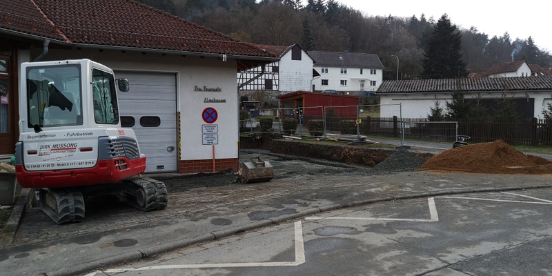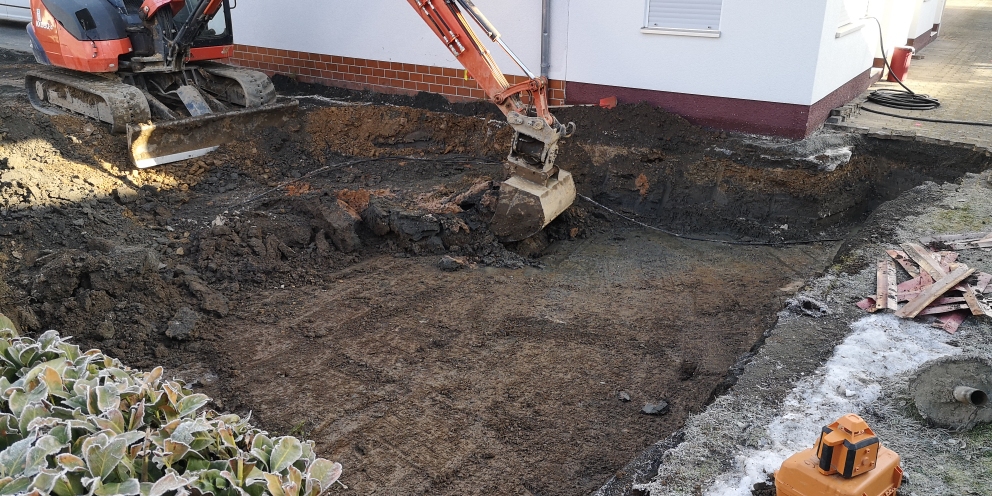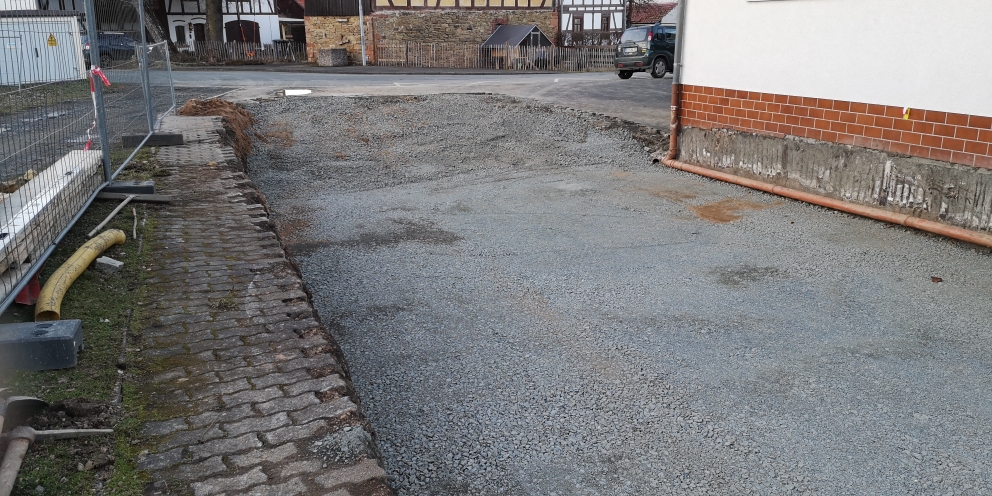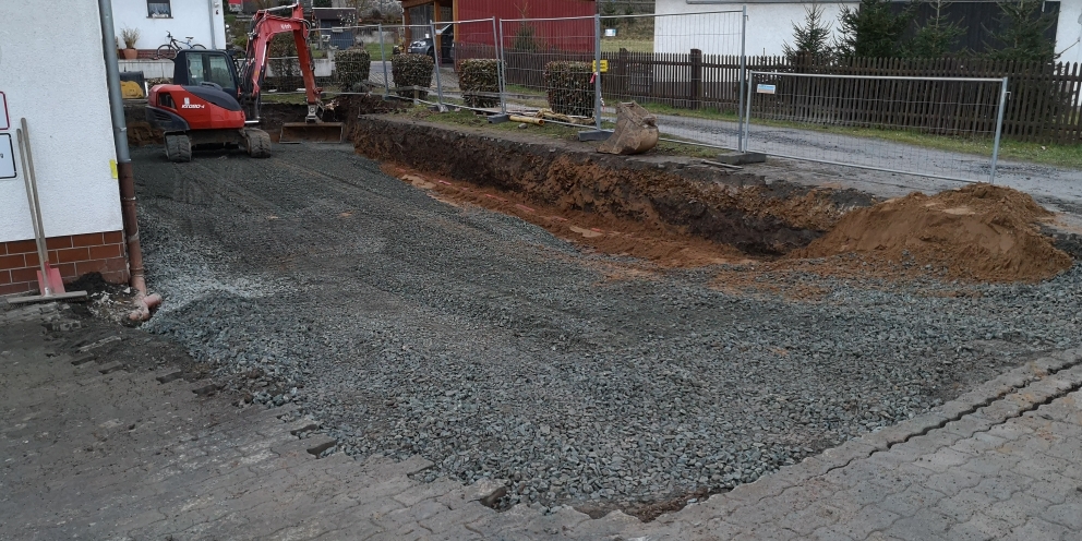 Nach dem das Wetter die Aktivitäten eingebremst hatte, geht es jetzt endlich los. Heute wurde damit begonnen, das Pflaster zu entfernen und die Vorbereitungen für das Ausheben der Fundamentgrube geschaffen.